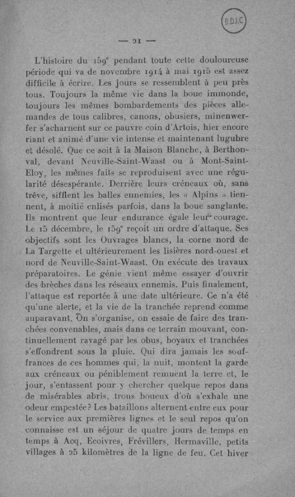 L’historique du 159ème RI décrit cette période de la façon suivante :