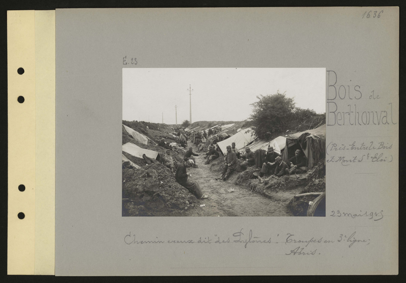 Ces jours-ci il fait plus froid et la pluie tombe pour cause un peu moins. Si tu lis le journal tu as dû voir quelque chose nous concernant. Le Communiqué officiel dit « dans la région d’Arras (bois de Bertonval) nous avons dû abandonner plusieurs tranchées où les hommes s’enfonçaient jusqu’aux épaules. » C’est là que mes camarades prennent la tranchée. C’est navrant, mais moi je n’y vais pas et ne vas pas te faire du mauvais sang à mon sujet. Je suis à l’abri. Plus heureux que mes camarades et moins méritant aussi ! Je vais bien et mon rhume est passé ; Tu parles s’il a filé quand il a vu les Valda ! Et je t’assure qu’il ne s’y fie pas à revenir. Je t’ai écrit il y a 5 jours : pas d’autre nouvelle à t’apprendre. J’attends ces jours une lettre de l’Oncle. J’ai écrit aussi à Laurence. Ici nous sommes en stationnement et je ne crois pas qu’on bouge d’ici avant le printemps ; où il va y avoir de terrible besogne à faire.