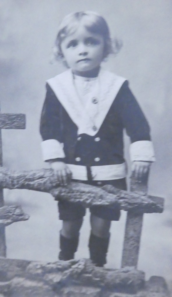 Petit Pierre est le fils de Joseph et d’Anaïs, qui est morte en couches au printemps 1914. Début 1915, il a bientôt 4 ans, à peu près l’âge de cette photo. Célestin est le parrain de Pierre.
