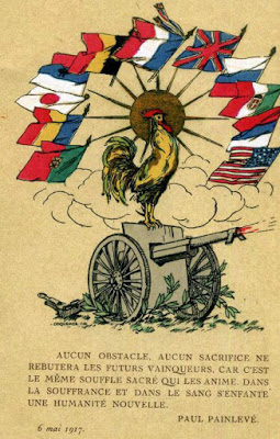 Une carte postale de propagande, éditée le 6 mai 1917, le Coq juché sur le canon de 75 :