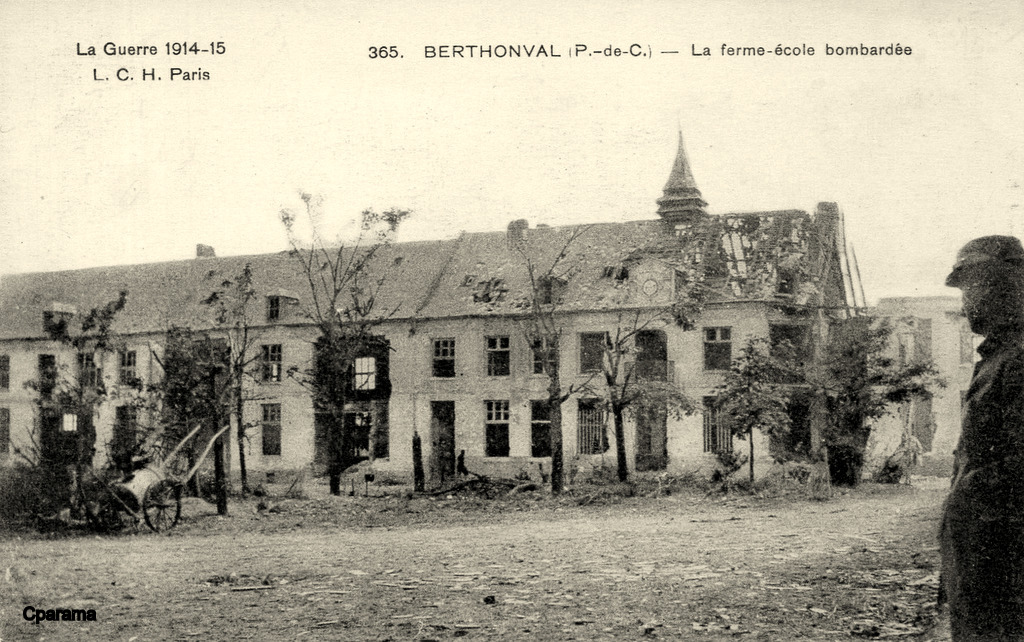 La ferme de Berthonval a été régulièrement bombardée durant l’hiver, mais ce n’est rien en comparaison de ce qui attend ce secteur à partir du 9 mai 1915…